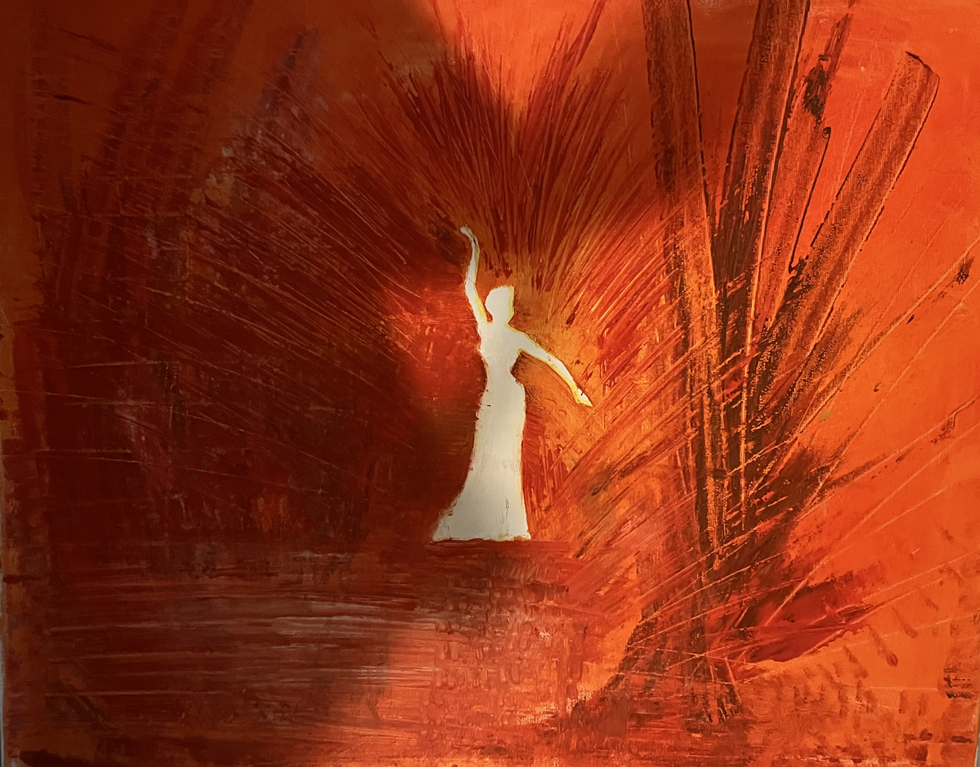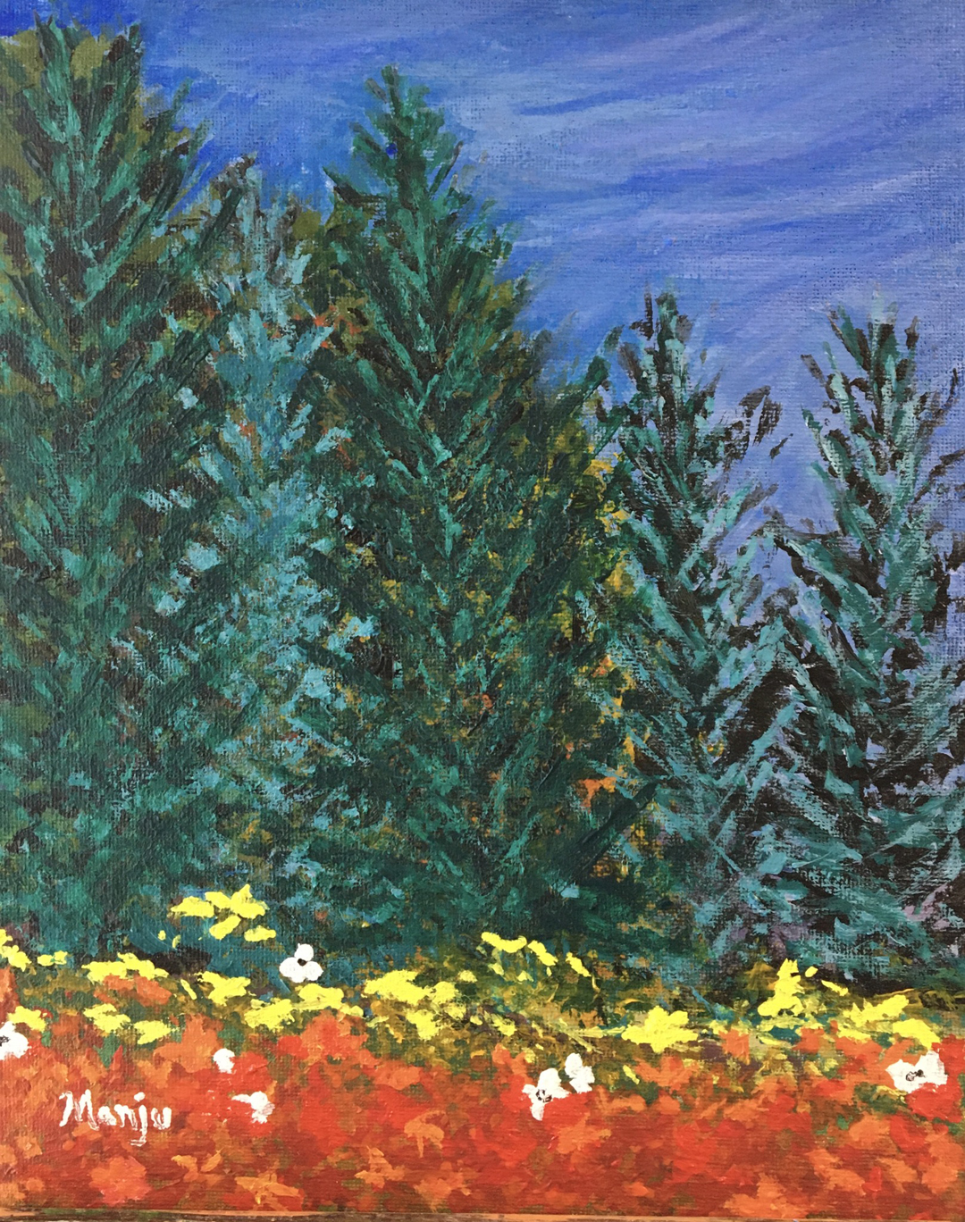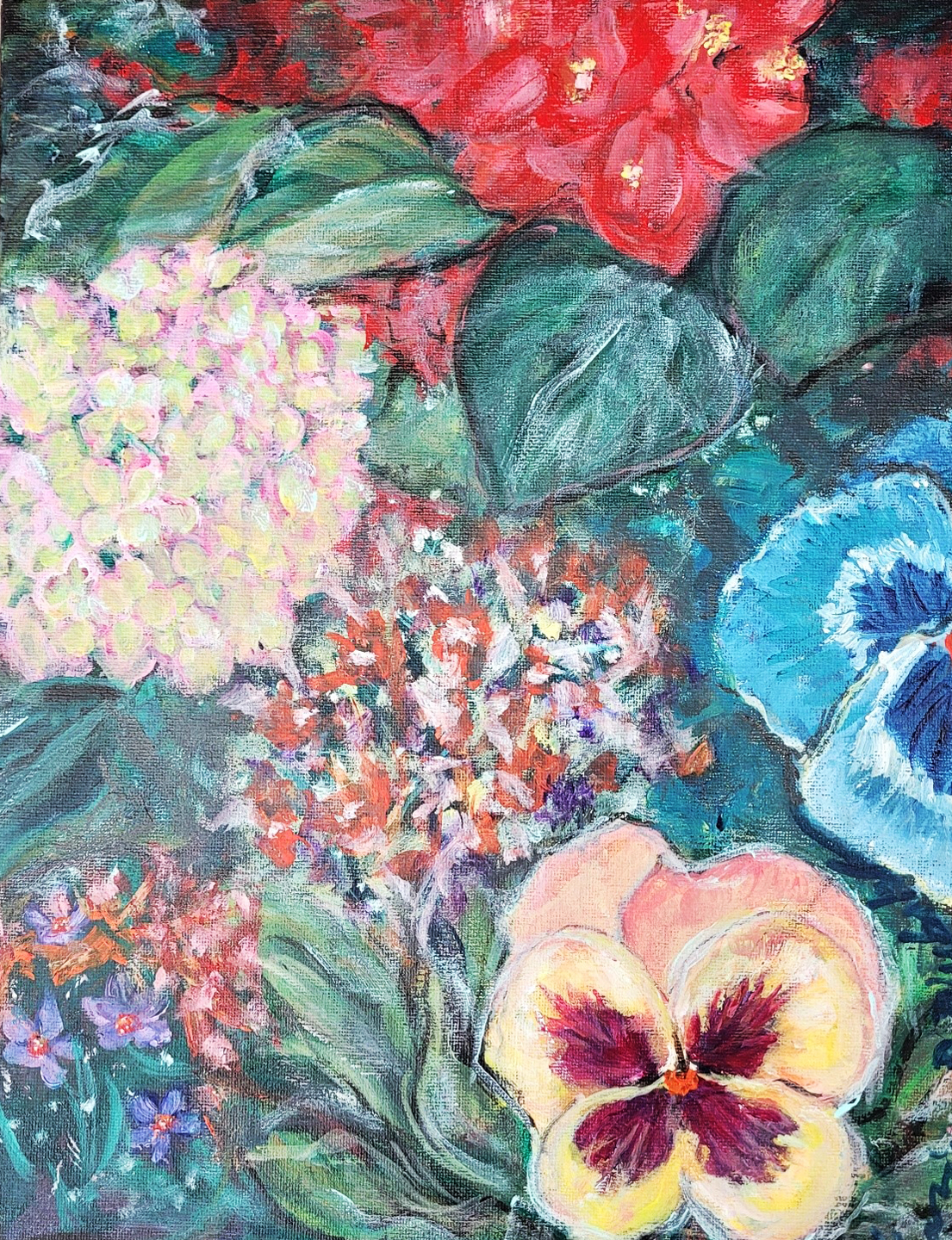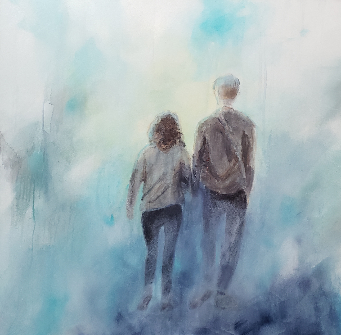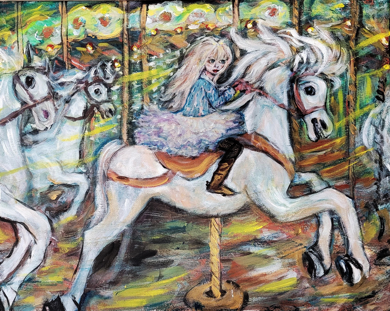 One of my techniques with some of my acrylic paintings is to pour the colours randomly onto the canvas and then move the canvas in a rotational fashion to mix the colours, then use a hair dryer to apply heat while blowing the paint. This allows for additional mixing of the colours where they randomly flow giving it a sense of movement.