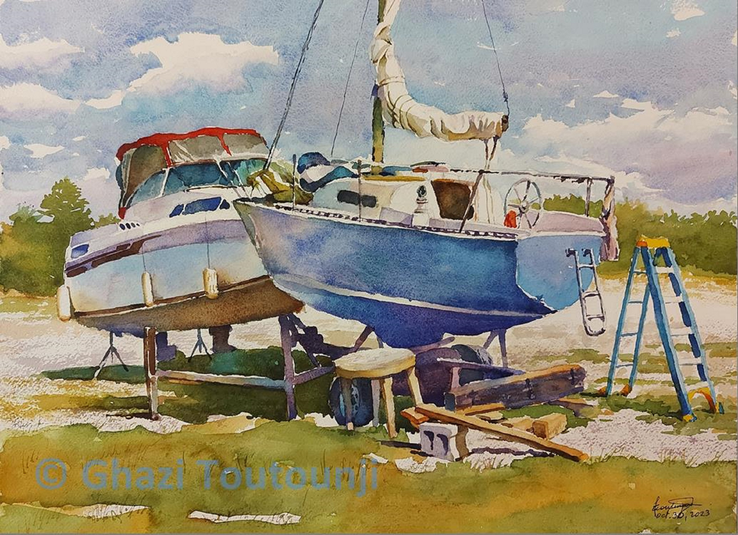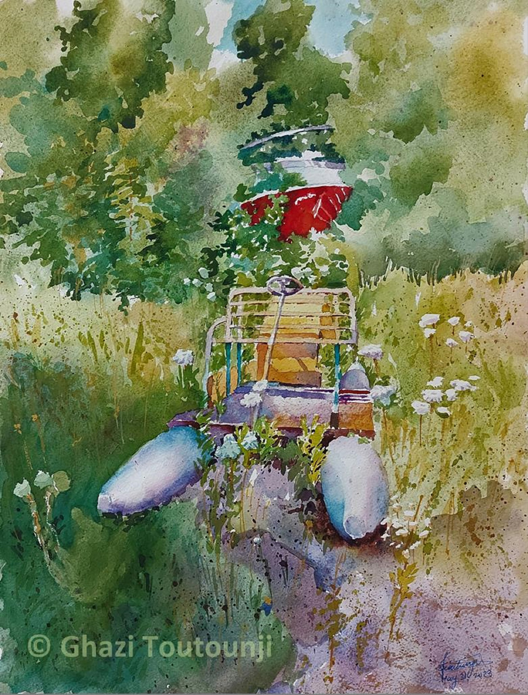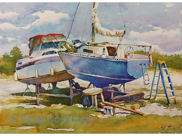 Born in Lebanon in 1954. A mechanical engineer by profession with a hobby for drawing, painting and sculpture.  He draws and paints in various media such as pencil, pastel, watercolor and oil. The subjects are mainly portraits and landscape. Few works of clay and wood sculpture as well as computer sculpture have been produced by him. Ghazi also does story illustration.