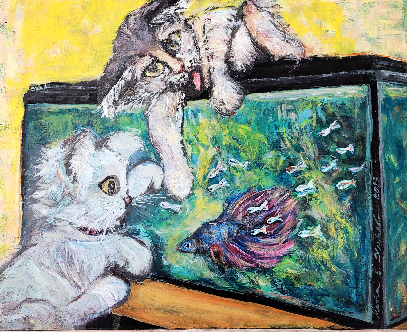 My name is Zahra and besides being a Medical Laboratory Technologist, I am an artist which is my passion, or better to say my life. I like to paint on types of surfaces: canvas, paper, glass, wood and leather, all using different techniques and materials accordingly: oil, acrylic, pastel, charcoal or pencils. On most of my paintings, I use brushes, but what I like the most to do is to use my fingers. Another important aspect with my techniques is that I like to put resin and gilding on top. This helps to reflect light and adds a sheen to the artwork, brightening it up for a beautiful finish. My main goal with my artwork is to give it a sense of a tri-dimension, hoping the observer sees and feels it as realistic and alive as I do.