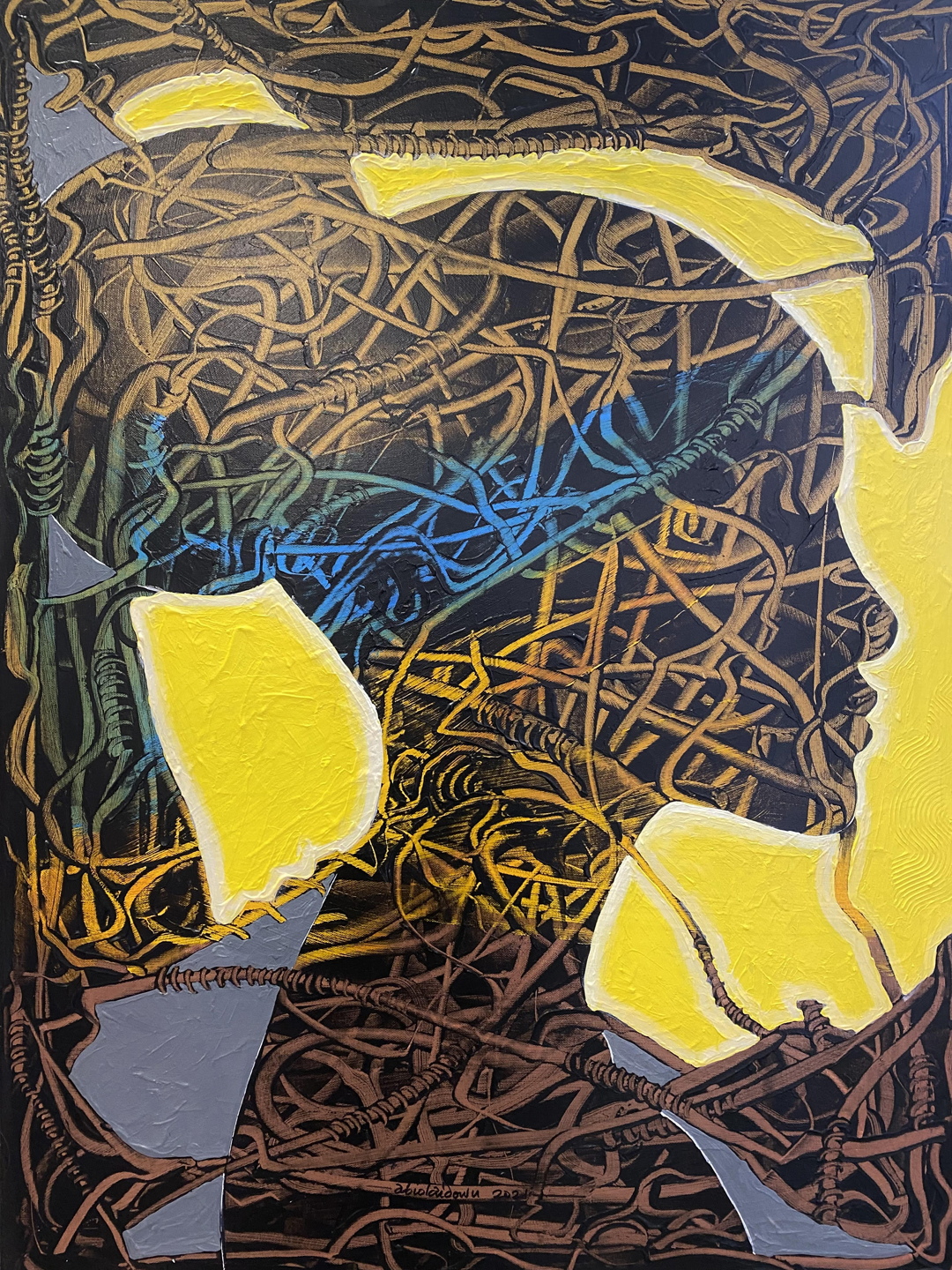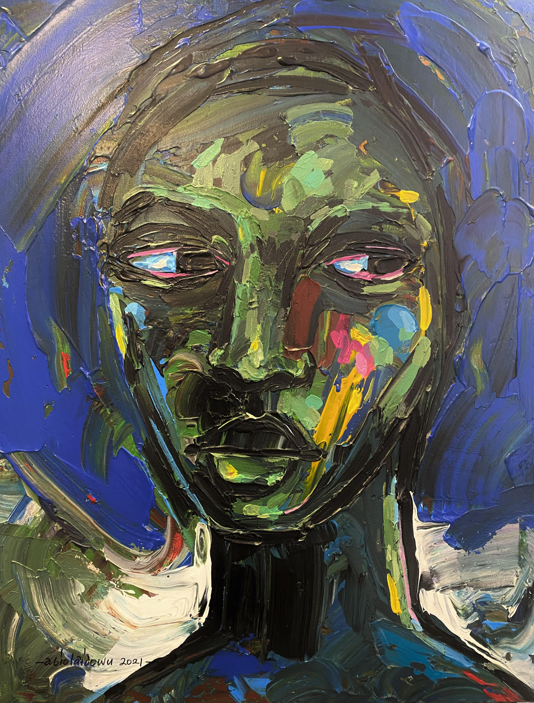 Abiola Idowu is a Nigerian-born visual artist based in Brampton, Ontario, Canada. Abiola is from the Zaria Art School, which is celebrated for its unique, vibrant figurative artwork. Scholars recognize his contributions to the school and the development of its unique style. Almost 30 years later, Abiola is still evolving as an artist. As he travels and grows, Abiola acquaints his eye and mind with new environments and cultures that influence his art. Abiola is passionate about sharing time and space with people, and using art to explore the beauty of the world. Find Abiola on Instagram.