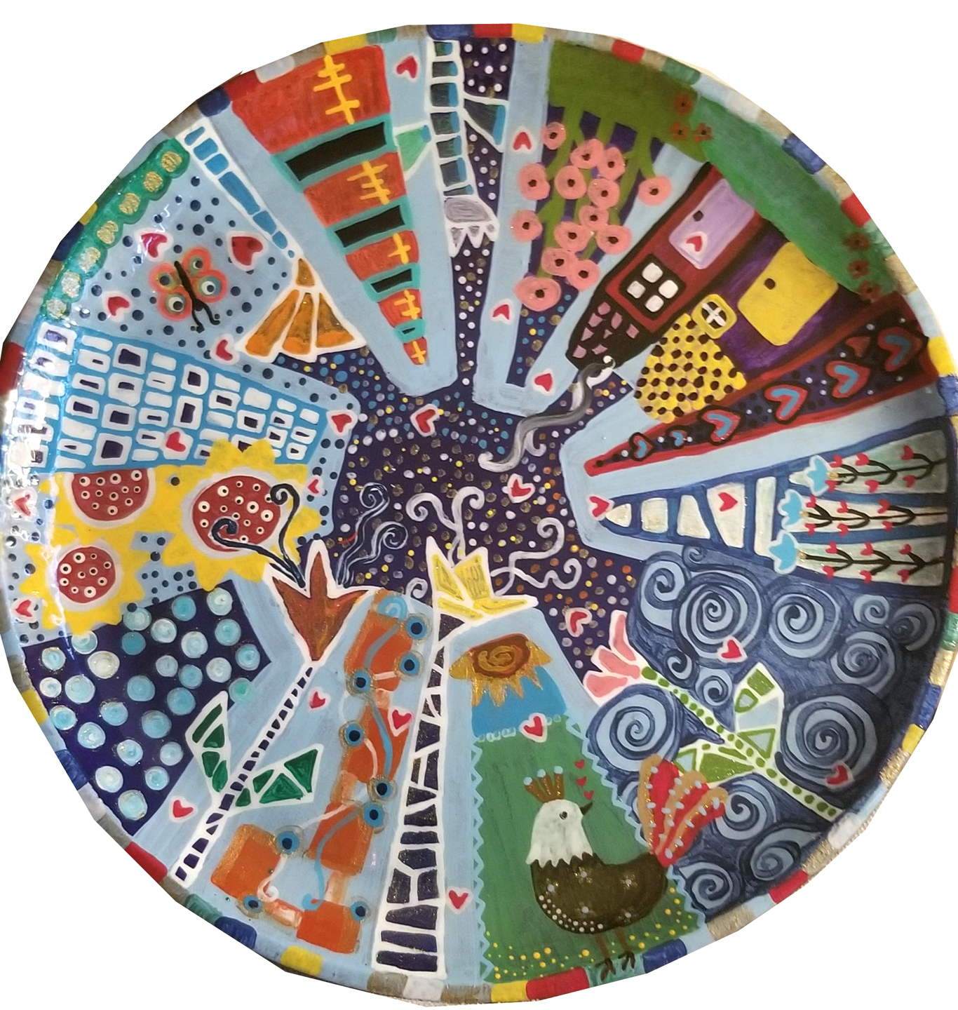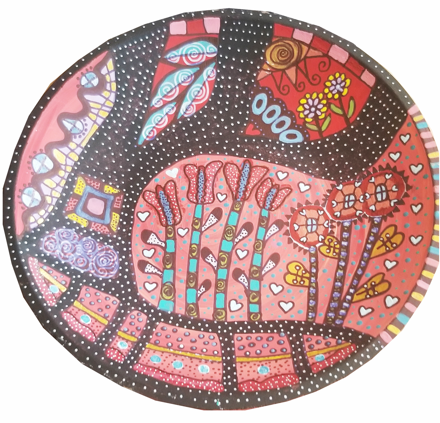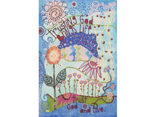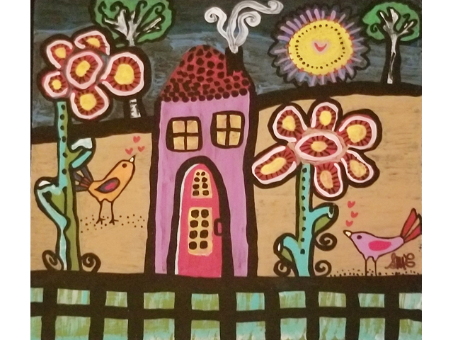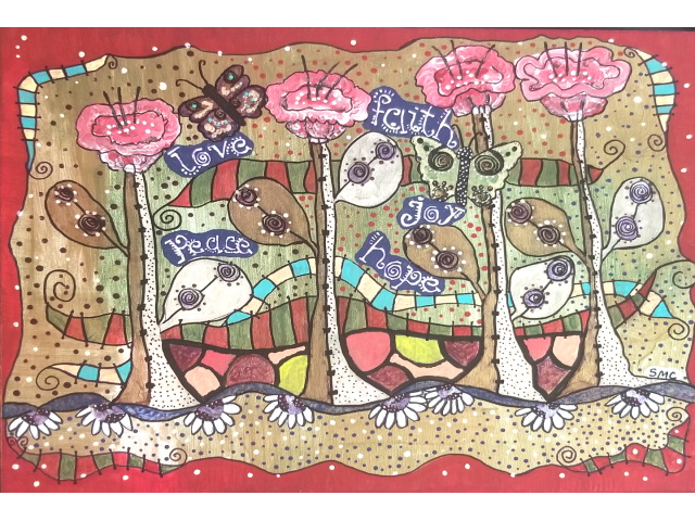 Suzanne Coloma was born in Dalhousie, New Brunswick. Suzanne began painting in her mid-forties. She didn't consider herself an artist until someone called her one. Suzanne is self taught, only taking art classes in high school. She loves color because it expresses so much feeling. Suzanne mainly uses acrylics, but has also worked with gouache and watercolor. She paints on canvas, wood, plastic and other materials, with her favourite being wood. She also paints wooden bowls and decorative plates. "Art is a wonderful way to express who you are. Art makes people happy."