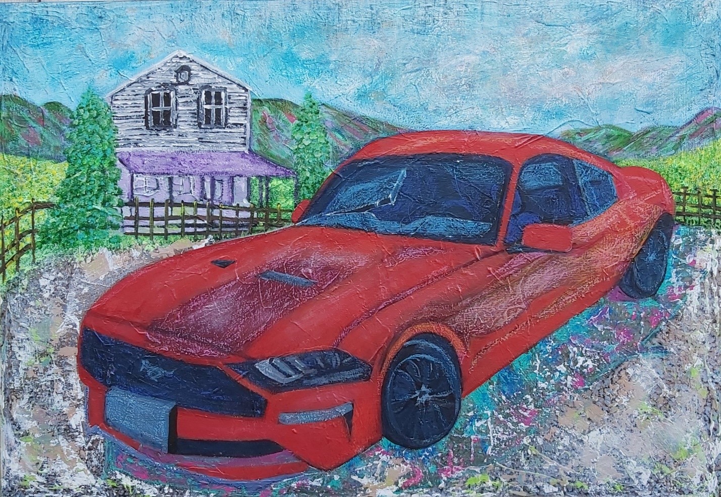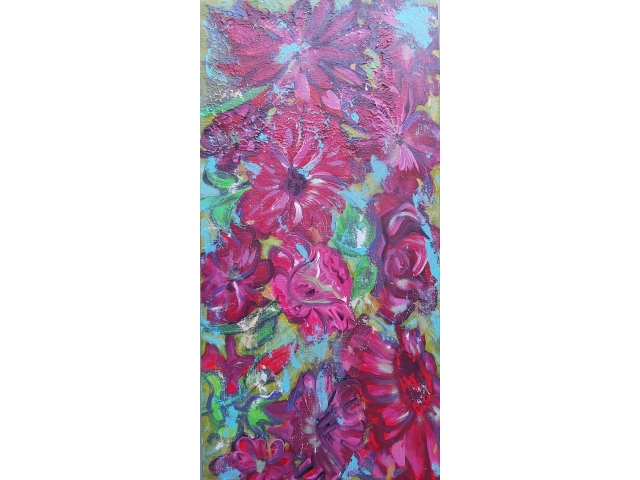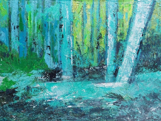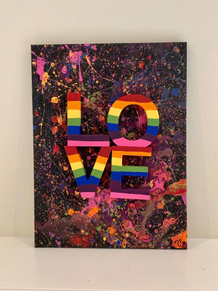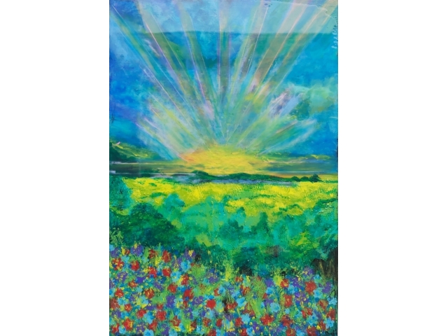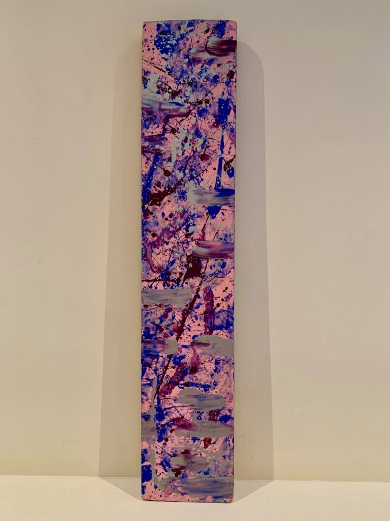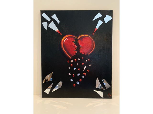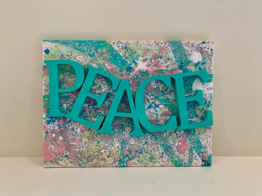 In my paintings, I enjoy working with acrylic paint the most and incorporating many forms of mixed media into my pieces. I like to experiment! I work with canvas a lot but have also been known to create many works out of recycled materials. I love how you can take a plain old piece of plywood from an old shelf or a piece of furniture and turn it into a beautiful piece of art! I also like to include a piece of poetry on the back of each one, giving the viewer insight into each piece, what it is about and what inspired it.