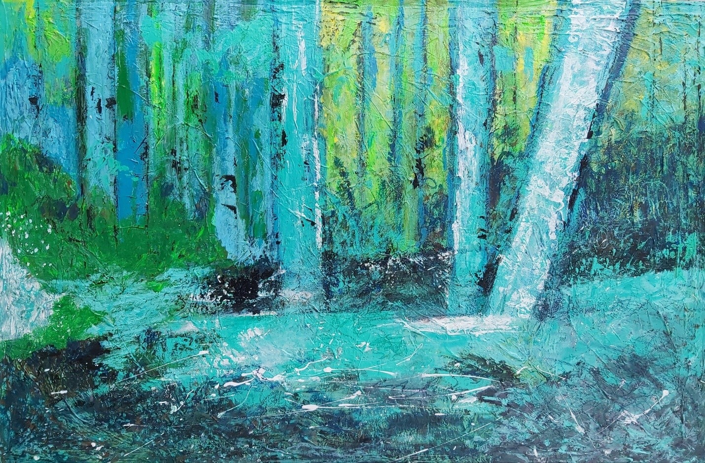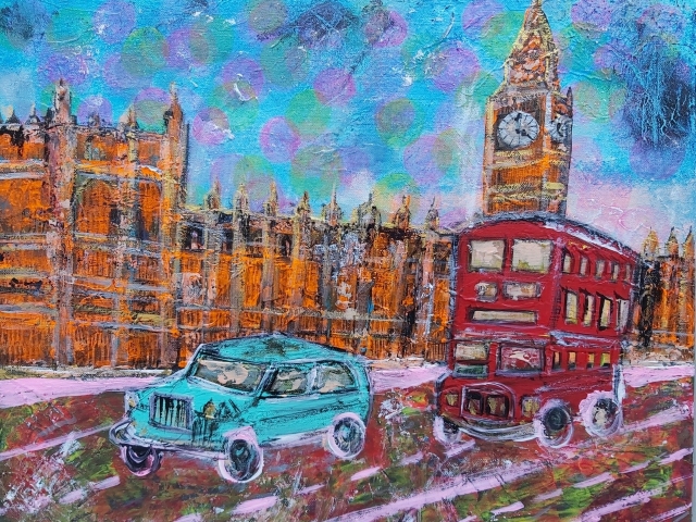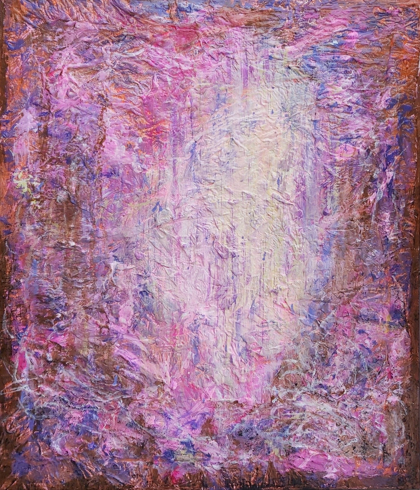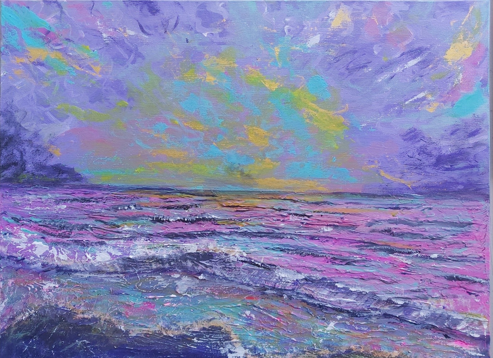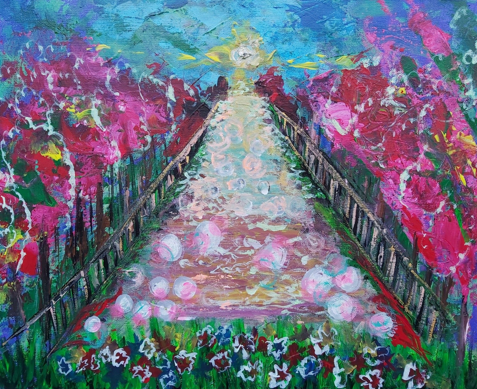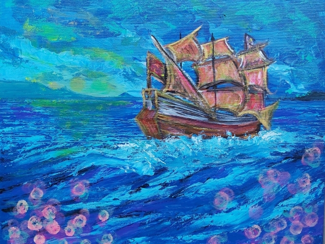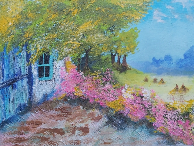 In my paintings, I enjoy working with acrylic paint the most and incorporating many forms of mixed media into my pieces. I like to experiment! I work with canvas a lot but have also been known to create many works out of recycled materials. I love how you can take a plain old piece of plywood from an old shelf or a piece of furniture and turn it into a beautiful piece of art! I also like to include a piece of poetry on the back of each one, giving the viewer insight into each piece, what it is about and what inspired it.