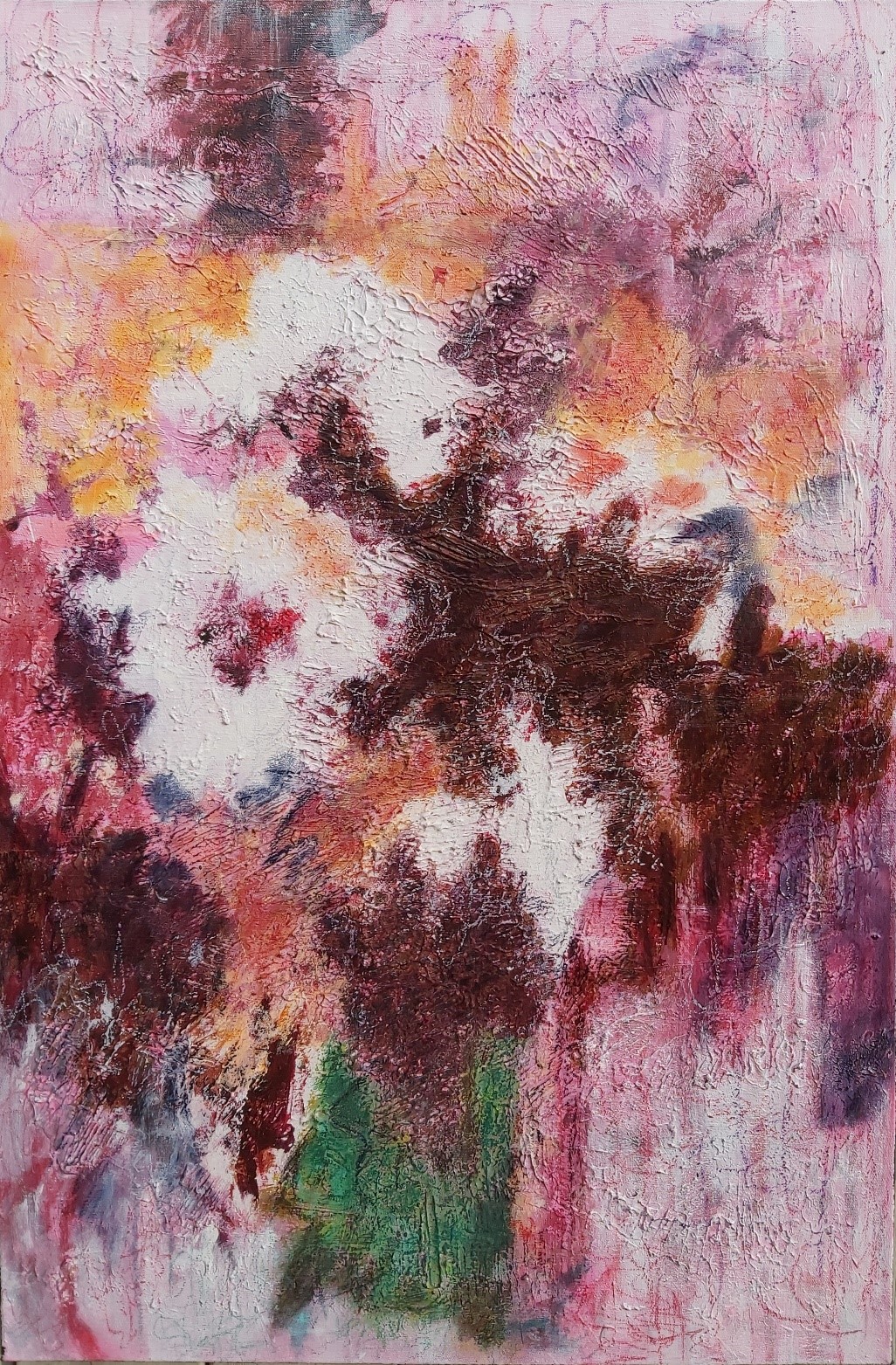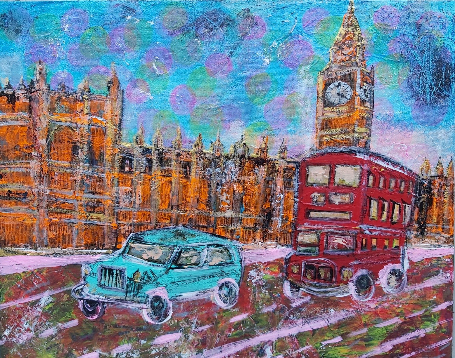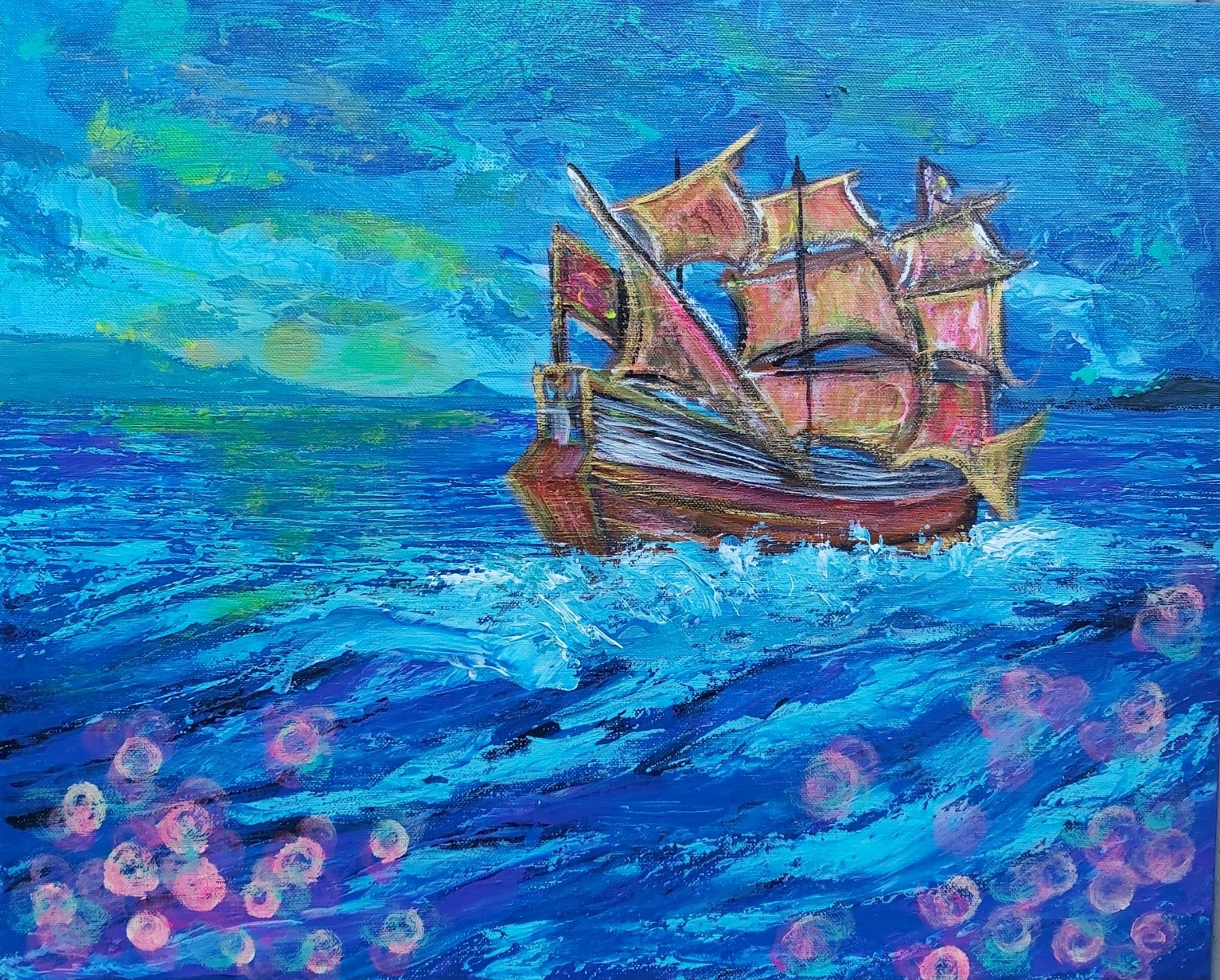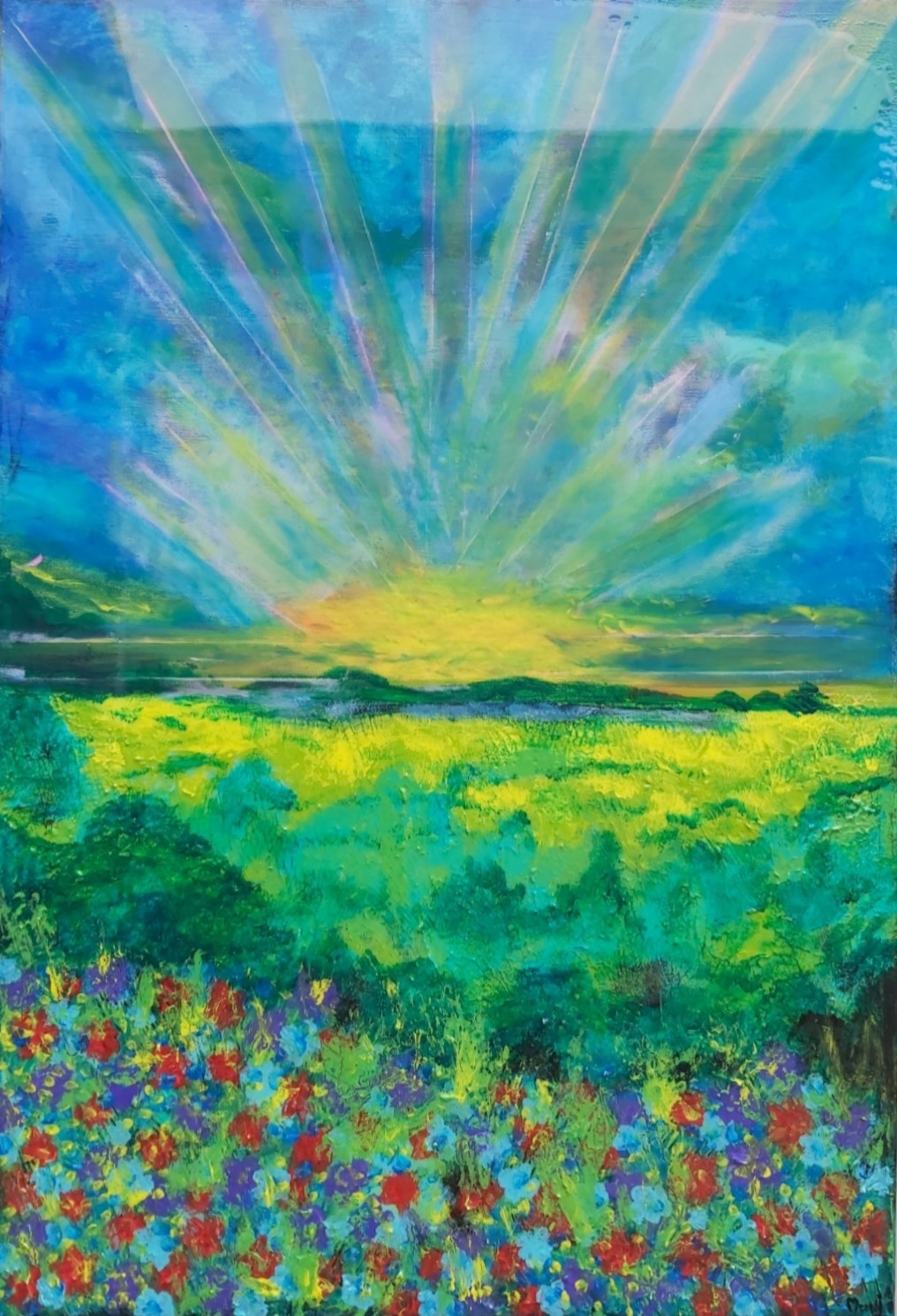 In my paintings, I enjoy working with acrylic paint the most and incorporating many forms of mixed media into my pieces. I like to experiment! I work with canvas a lot but have also been known to create many works out of recycled materials. I love how you can take a plain old piece of plywood from an old shelf or a piece of furniture and turn it into a beautiful piece of art! I also like to include a piece of poetry on the back of each one, giving the viewer insight into each piece, what it is about and what inspired it.