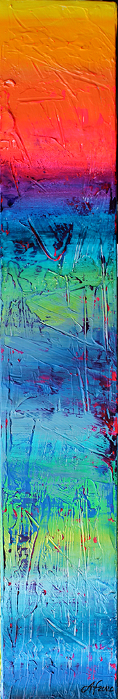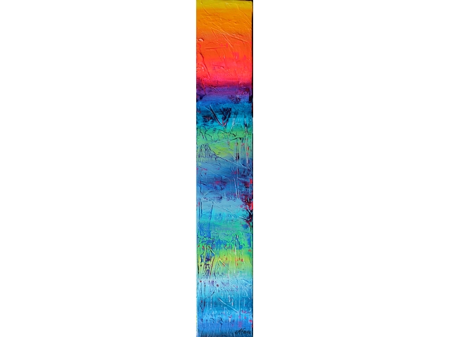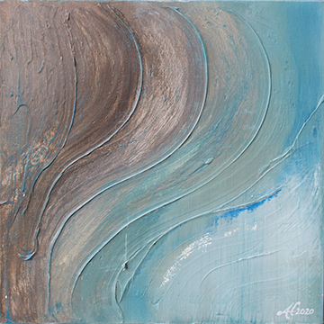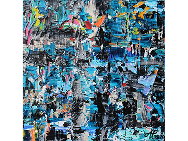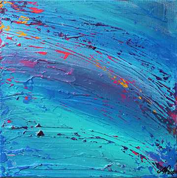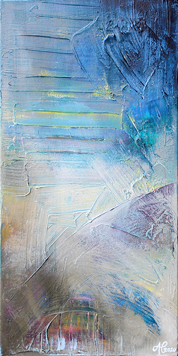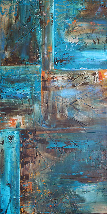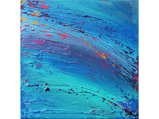 My current abstract series focuses on colour and texture, through the use of acrylics, gesso and modelling paste. I have an intuitive process with many layers, built over multiple painting sessions. Each piece starts with a colour palette and the emotion it evokes. I use either soft brush blending techniques or bold mixes with a palette knife, or a combination of both. I do not write about my specific inspiration or what I see in a painting. As the viewer, the art becomes yours. It is your interpretation and connection to the piece that matters.