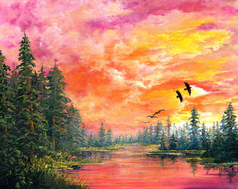 Working with such favourites as oils, acrylics, and gouache paints, she uses her photographic memory and life experiences to produce vibrant, realistic paintings of mountains, lakes, flower paintings, and trees unique to Canada. This picturesque environment directly inspires much of her work, while other pieces are depictions of her ventures and various travels.